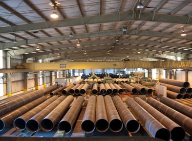 Our line pipes are designed for the safe and efficient transportation of oil, gas, and water. Manufactured to API 5L PSL1 specifications, we offer sizes ranging from 16" to 64" and wall thicknesses from 7.14 mm to 19 mm.